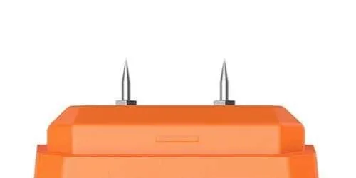 (For a Pin Meter) Press both pins firmly into the wood. Make sure that each one penetrates the wood fully.
