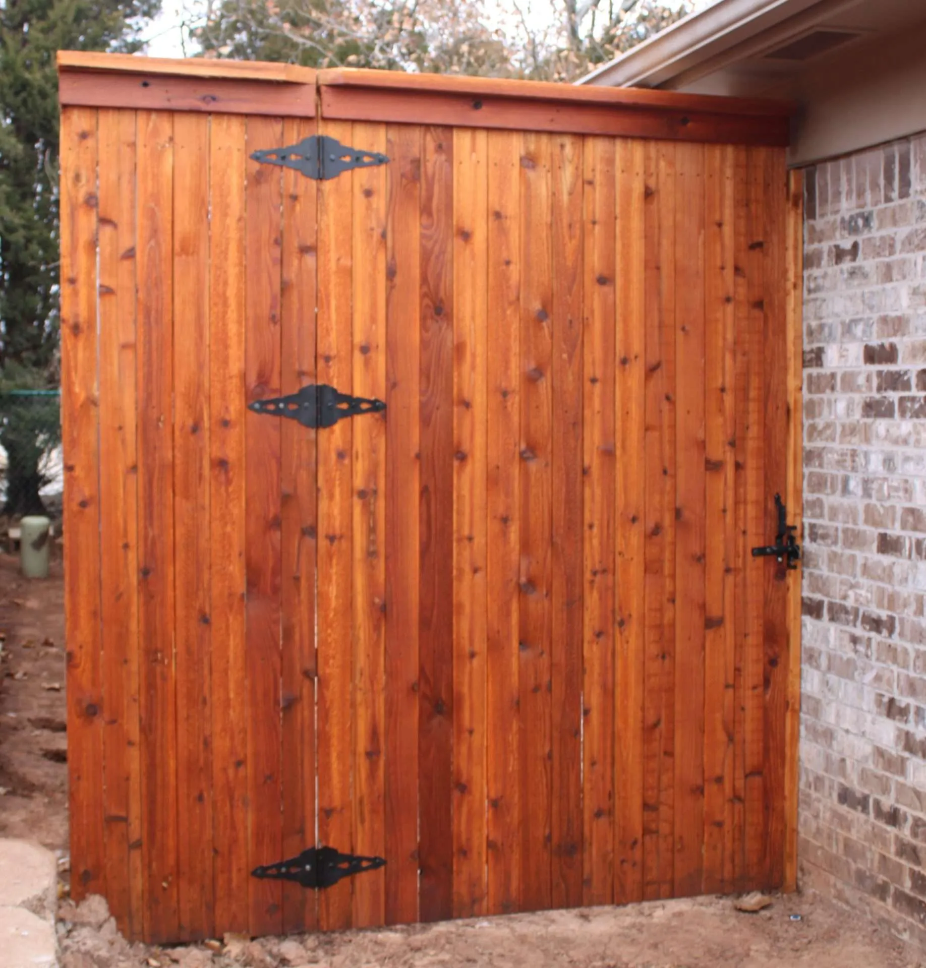 Wood Defender Cedar Tone stain on a cedar fence.